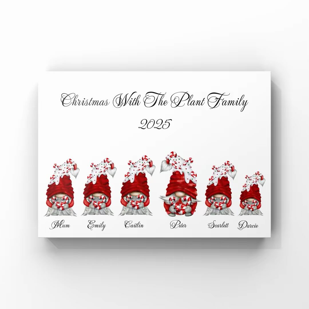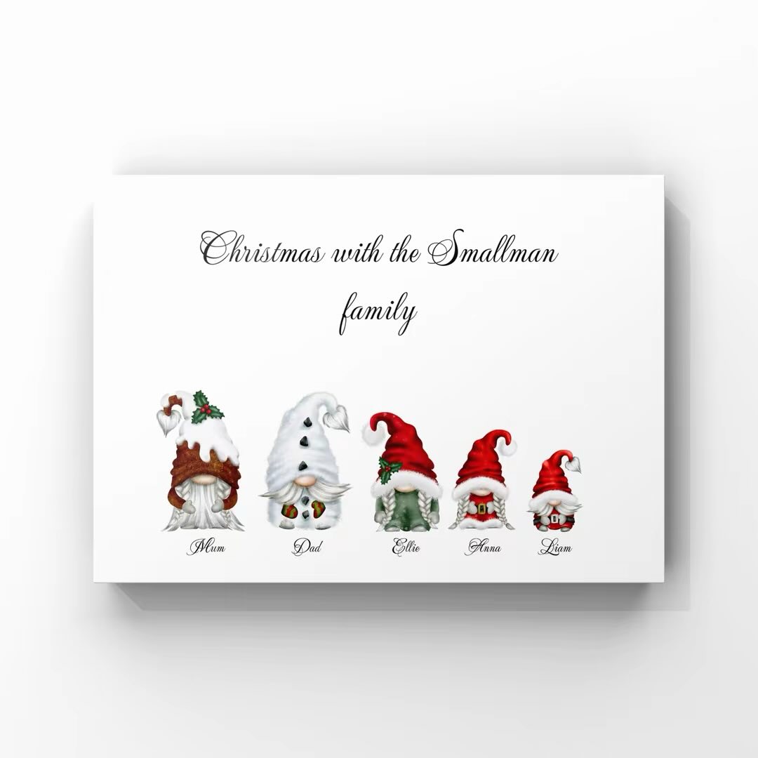 A charming A4 unframed Christmas gnome family print, personalised using the codes shown in the product images. Create your own festive gnome family for a unique, heart-warming holiday display or gift.
