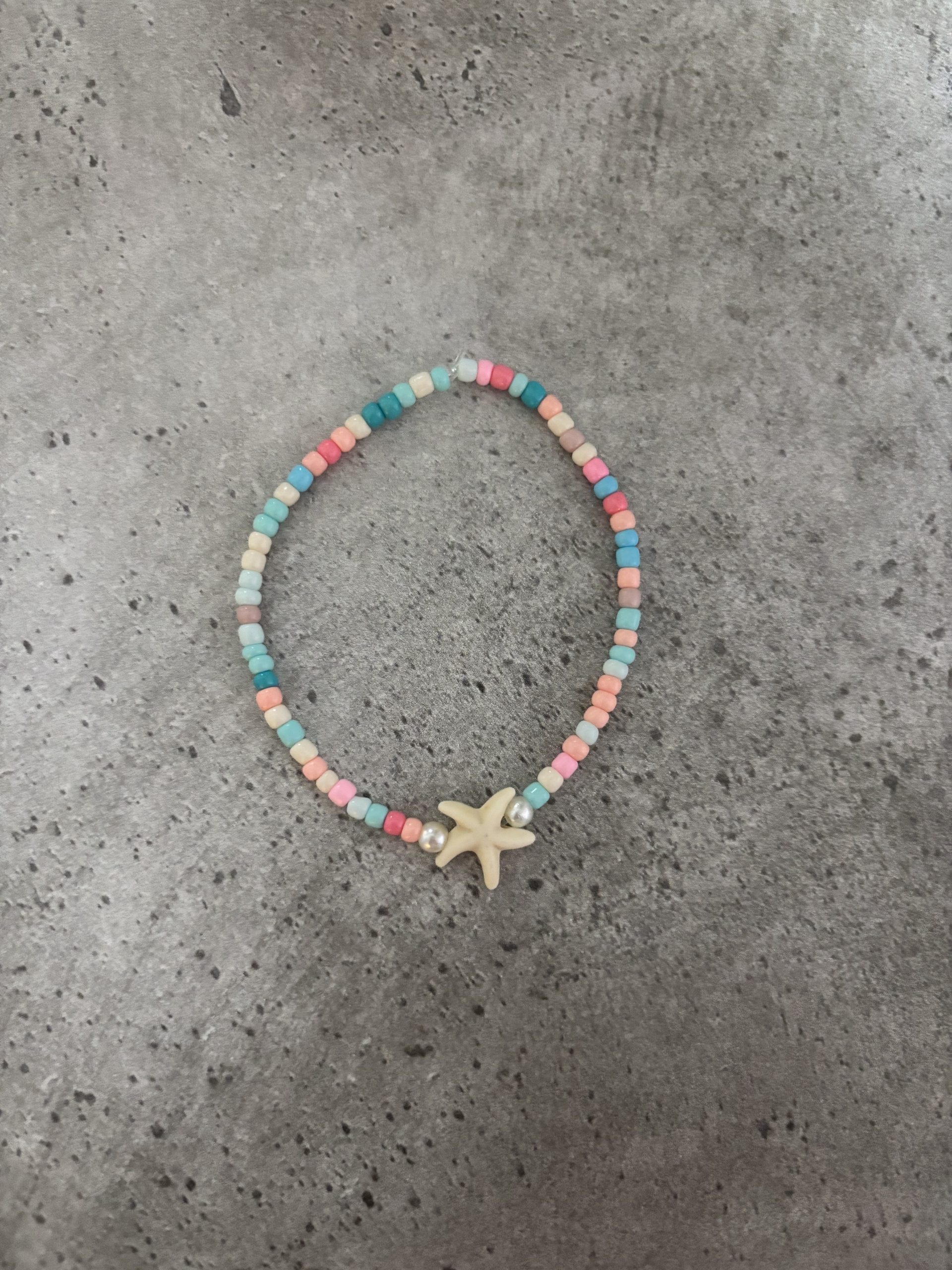 Coral Cove is a handmade seed bead bracelet featuring soft pink, blue, and cream tones with a charming starfish design. Inspired by coastal beauty, this lightweight beaded bracelet adds a touch of beachy elegance to any outfit. Perfect for everyday wear or gifting to an ocean lover.